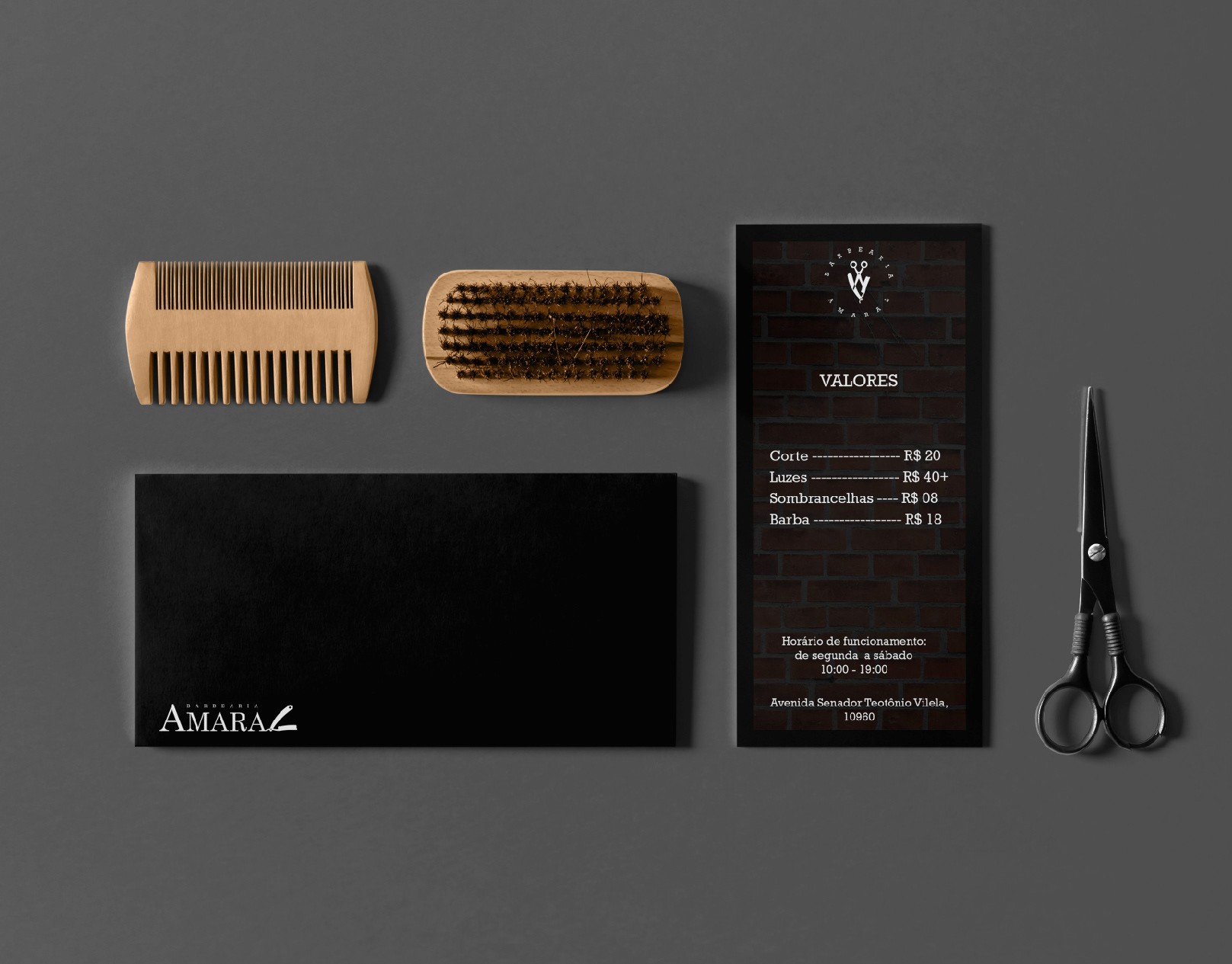 A Barbearia Amaral é um projeto de uma barbearia local com foco em trazer uma identidade refinada e diferente das identidades visuais das outras barbearias.